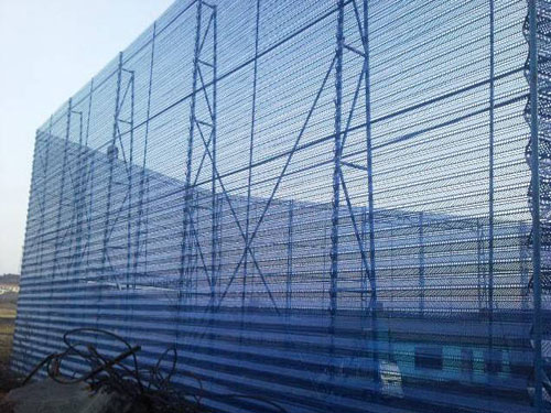 通过料场防风抑尘网后的来流风,出会形湍流和旋涡气流,但此时的风速、风压衰减幅度很大,是与风速n次成正比。所以风速越大,挡风抑尘墙的抑、降尘效率越高,控制扬尘的效果越佳。料场由于煤料含有一定的硫分和挥发分,是一个酸性环境,腐蚀性较强,采用玻璃钢料场防风抑尘网,其最大的缺点是易被无机酸侵蚀,故不适于用在料场等酸性环境中,且紫外线强度高的地区会加速其老化进程。而采用钢质料场防风抑尘网,只有冲孔断口易腐蚀,为防止料场防风抑尘网冲孔后产生的断口被料场工业大气环境下产生的二氧化硫腐蚀,静电粉末喷涂后,涂膜光滑、丰满,耐水、耐磨、抗油、绝缘性均较好,外观美观漂亮。综合抑尘率可达80%以上。可根据企业需求制作成各种颜色。